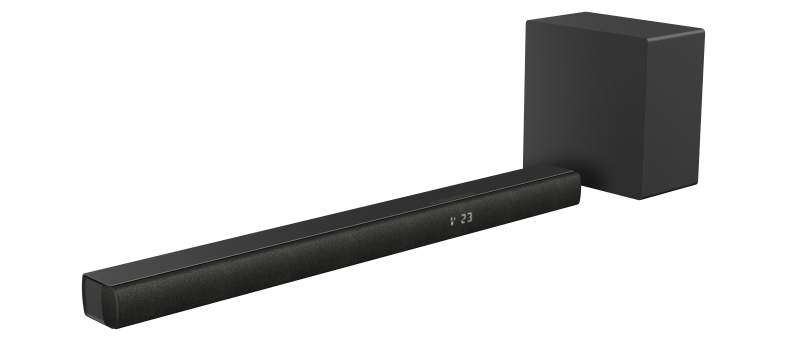 付属の100W出力ワイヤレスサブウーファー、本体はL/R/センター5個のスピーカー、合計6個のスピーカーを3つのアンプで駆動。 センタースピーカーがナレーションやセリフなど人の声をクリアに再生します。 また、視聴コンテンツやシチュエーションによって選べる6個のEQモードを搭載しました。