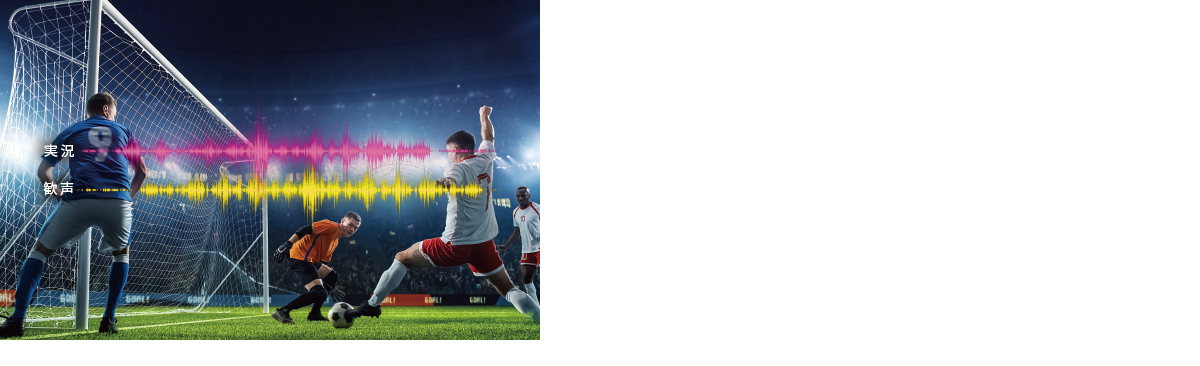 スポーツ番組では解説の音声を聞き取りやすくしたり、スタジアムなどの歓声を強調して臨場感を高めたり、ドラマなどでは背景音を弱めてひとの声を聞き取りやすくすることも可能。