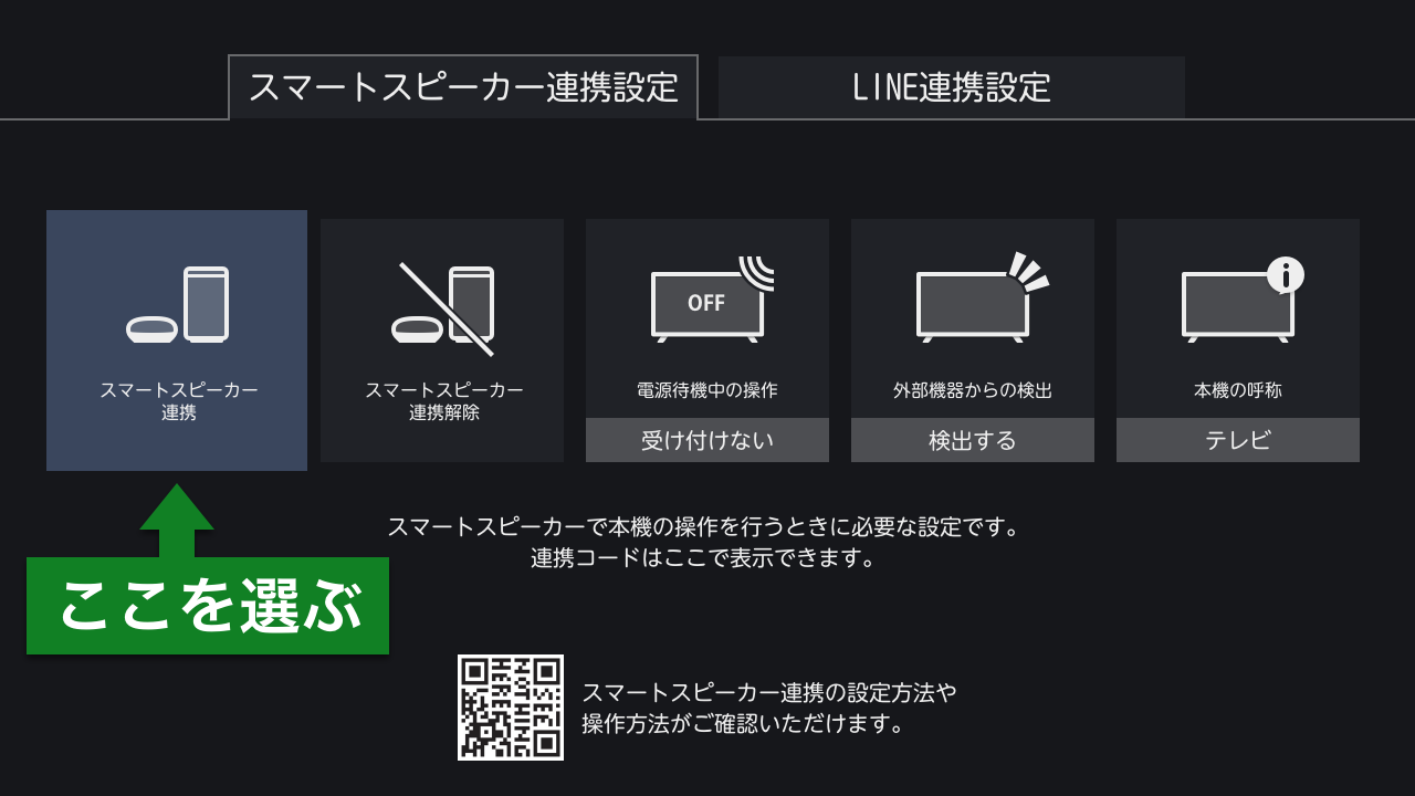 レグザの「みるコレ」画面(リモコンの「みるコレ」ボタンを押して表示)で、「アプリ/クラウド設定」>「クラウド設定」> 「スマートスピーカー連携設定」>「スマートスピーカー連携」を選び、スマートスピーカー用連携コード(8桁)を表示します。